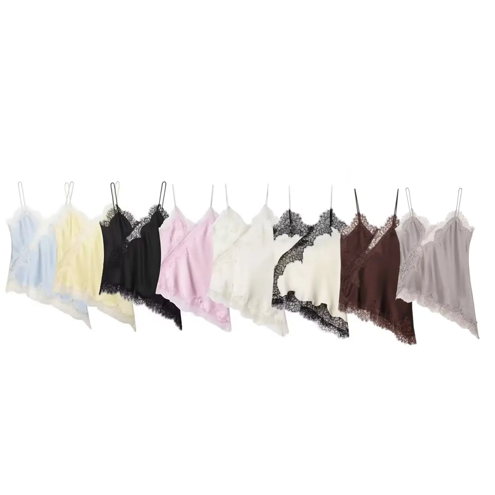 HH Sexy Women Asymmetrical Lace Slip Tops Summer Female Backless Sleeveless Off Shoulder Underwear Tanks Elegant Beach Camisole