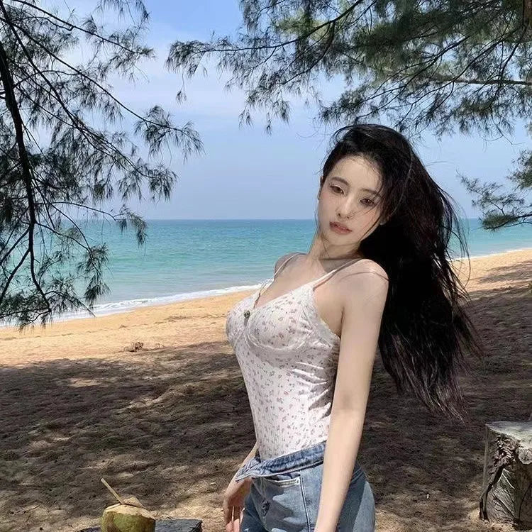 Women Sexy Floral Print Bodysuit Lace Trim Sleeveless Slim Fit Leotard Summer Jumpsuit Romper Sexy Underwear Nightwear Lingerie